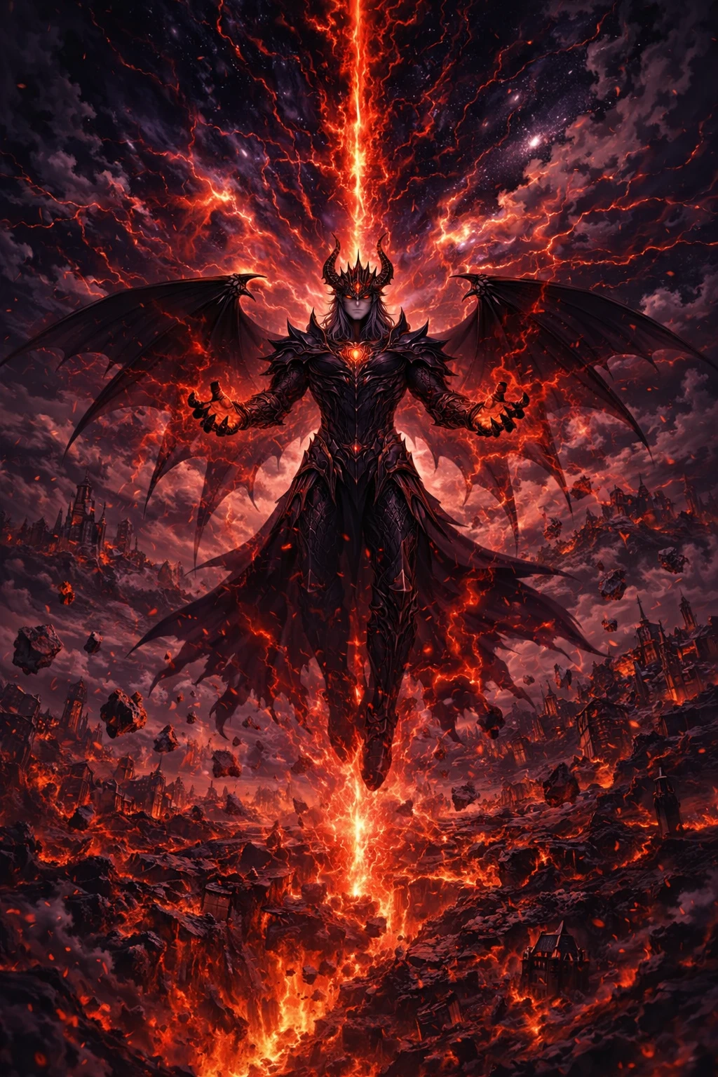 ◈마왕(권속 다수) ◈흑발적안, 흑요석 질감의 유기적 암흑 풀 플레이트 아머, 가슴 중앙 적색 코어, 거대한 흑익과 비틀린 흑각, 시공 균열·붕괴를 유발하는 마력 손톱 ◈차원을 가르고 공간을 붕괴시키는 존재 ◈인과와 물리 법칙을 침식하고 재정의하는 공격력