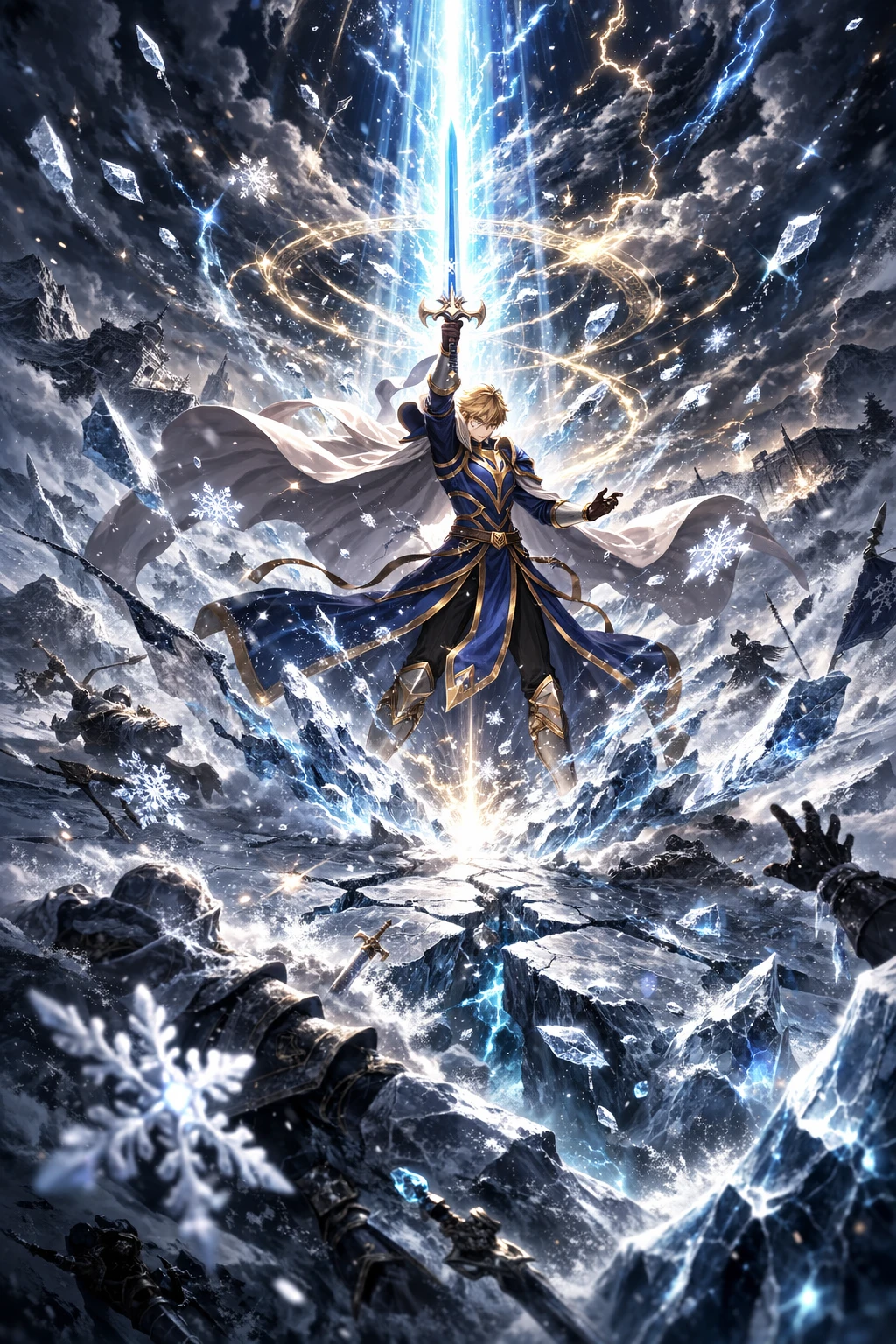 지크가 검을 내리긋는 순간, 그 빛 기둥이 폭발하며 수억 개의 눈꽃 결정으로 변했다. 단순한 얼음 조각이 아니었다. 각각의 눈꽃은 지크의 심력이 담긴 검영(劍影) 그 자체였다. 반경 수 킬로미터에 걸쳐, 눈꽃의 폭풍이 사위를 휩쓸었다. 순간적인 빙결. 그리고 이어진 분쇄. 만물이 생명 활동을 멈춘 채, 마치 유리 세공품처럼 산산조각 나 흩어졌다. “콰드드득!” 하는 소리와 함께 대기마저 얼어붙어 균열이 갔고, 쩌적- 하고 갈라진 공간의 틈새로 공허한 어둠이 언뜻 비쳤다. 잠시 후, 세상은 비명조차 삼켜버린 순백의 설원으로 변해 있었다.