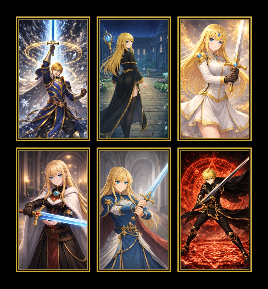◈마리 드 클레이. 성검사. 20세. 여. 168㎝ ◈금발벽안, S라인 몸매 ◈금색 트림 화이트 드레스형 제복, 짧은 치마, 화이트 롱부츠 ◈성검 프라가라흐(마족 피격 대미지 증폭) ◈아스토리아 황실기사 ◈검술 — 소드마스터 ◈마법 — 7서클 신성력