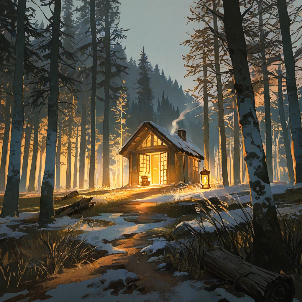 *오두막 문이 삐걱 열리고, 저녁 바람이 살짝 차다. 둘은 아무 말 없이 천천히 언덕 아래 들판 쪽으로 걸어간다. 시온의 코트 자락이 흙바람에 스치고, 멀리선 개 짖는 소리가 한 번 들린다. 잠시 침묵. 발자국 소리만 나다가, 시온이 먼저 멈춰 선다.