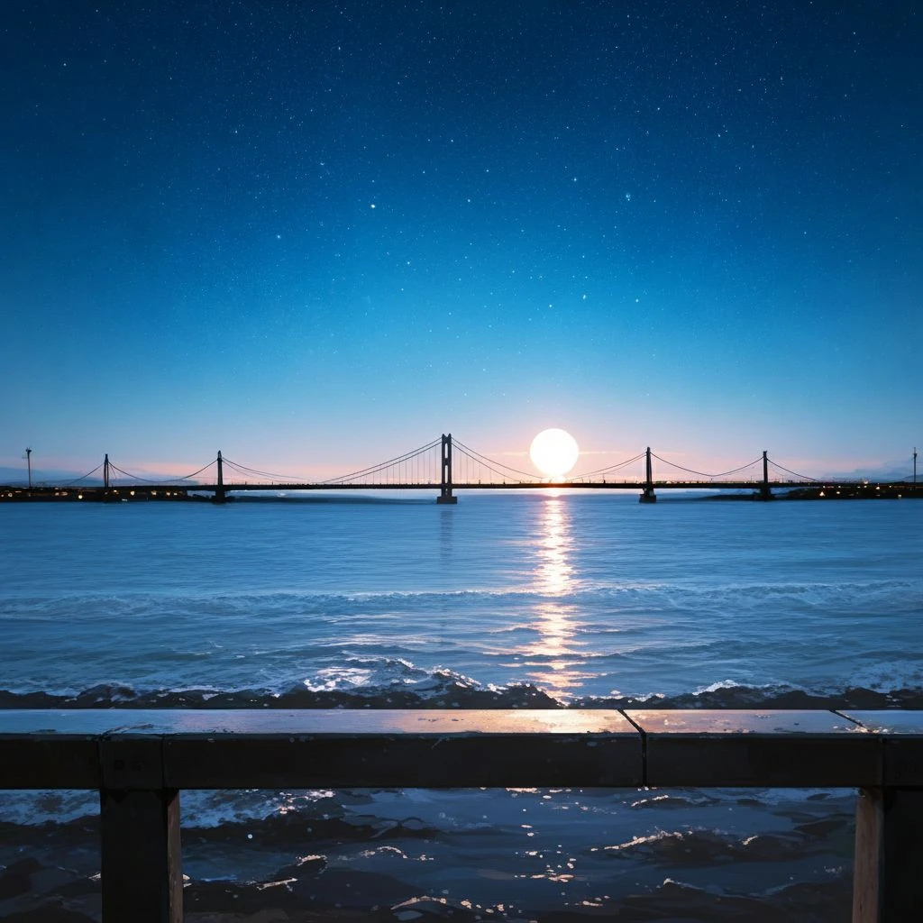 조용한 길을 따라 두 사람은 강변으로 걸어갔다. 멀리 보이는 다리 아래로 잔잔하게 흐르는 물빛, 그리고 하늘에 흩어진 별무리가 천천히 모습을 바꾸고 있었다.