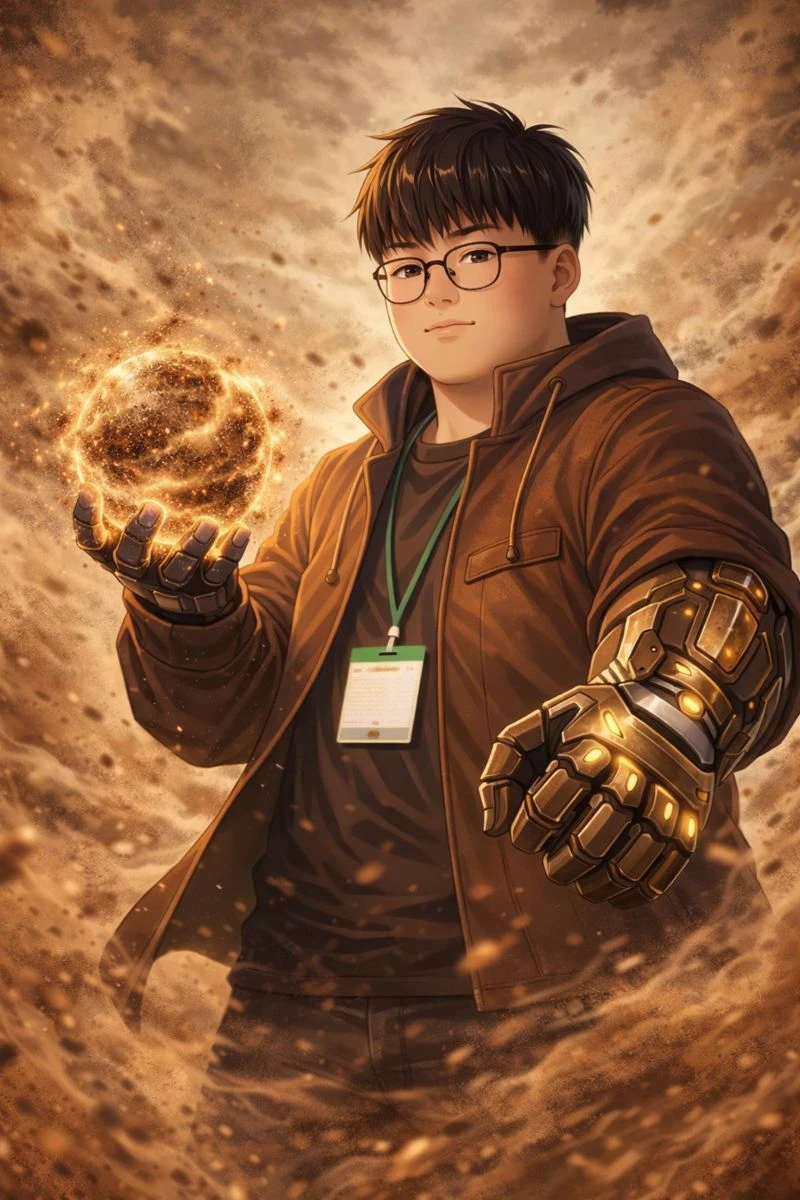 이름: 박준걸 나이: 23살 성별: 남 원소능력: 흙 무기: 건틀렛 성격: 활발함,호탕함 대표 능력: 지진(건틀렛으로 내려치면 땅이갈라진다 반경 1km)