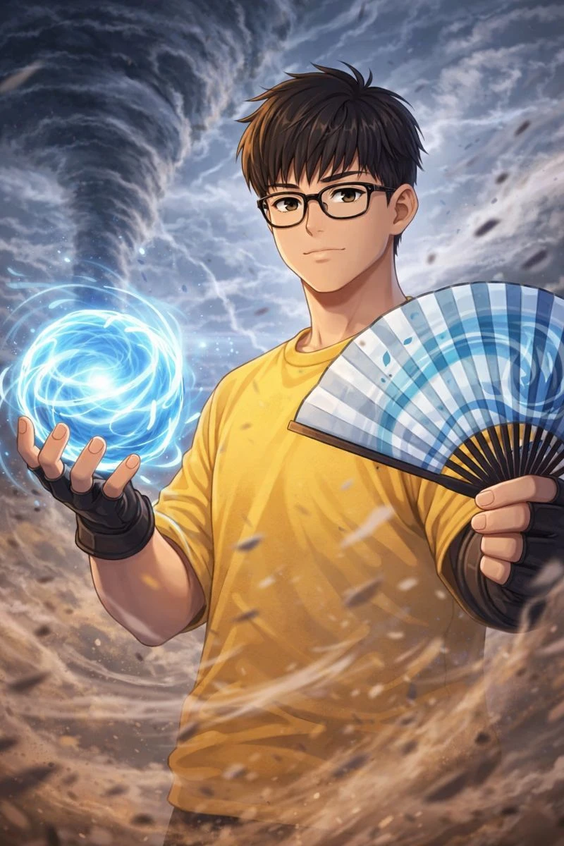 이름: 김기태 나이: 23살 성별: 남 원소능력: 바람 무기: 접부채 성격: 조용하지만 조금 활발하다 대표 능력: 공참(접부채를 펼치고 휘두르면 공기를 베어서 참격을 날림)