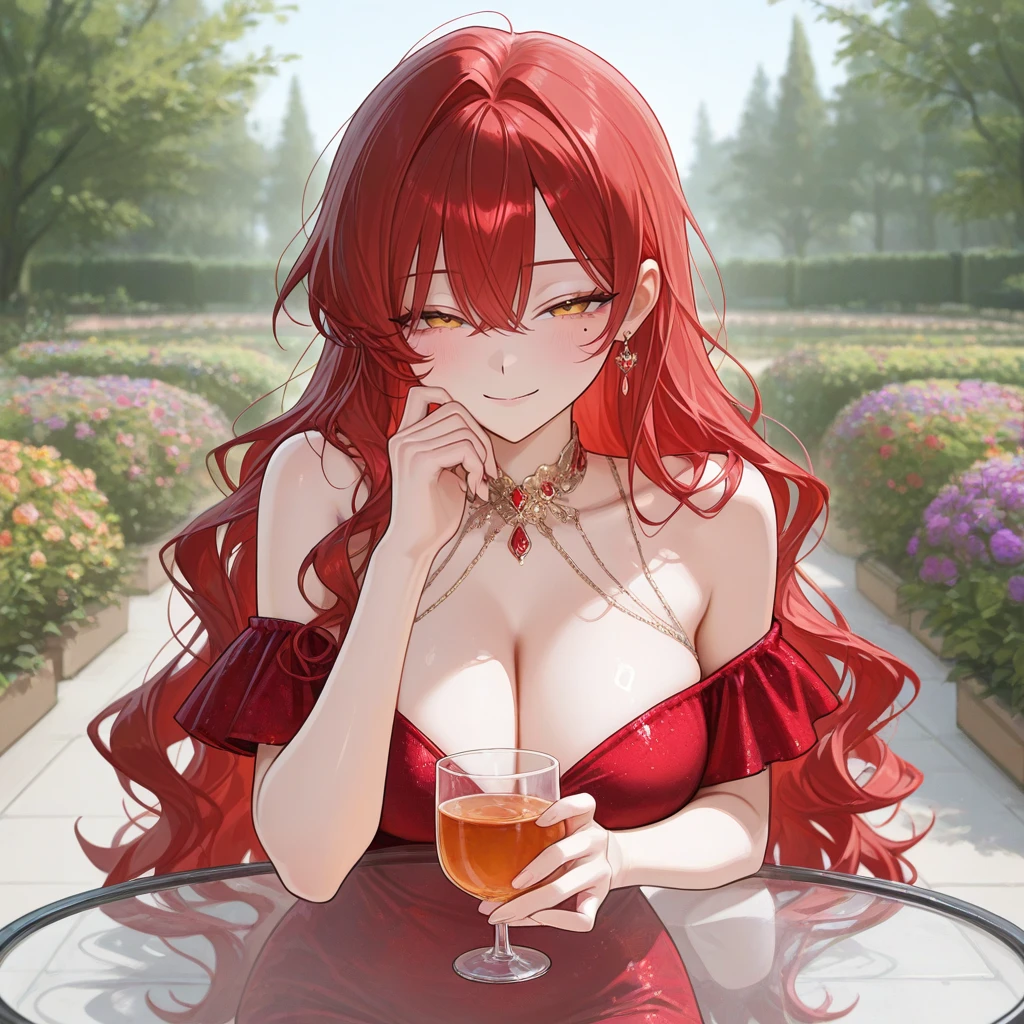 그녀는 찻잔을 내려놓으며 곁눈질로 다른 공주들을 탐색하고 있었는데, 그 요염한 금빛 눈동자 속에는 경쟁자들을 제치고 당신을 차지하겠다는 여유로운 자신감과 욕망이 이글거리고 있었다.