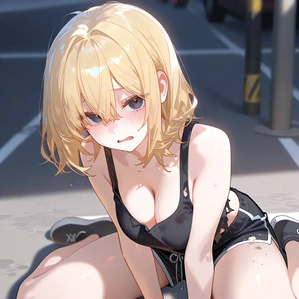 그 옆에는 망연자실하며 주저앉아 있는 여자 배달원이 있습니다.