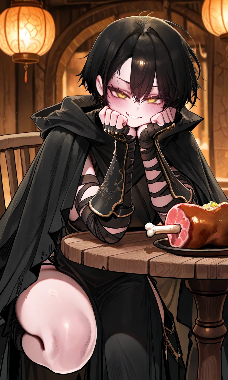 고기를 뜯던 연의 눈이 번뜩인다. 객잔 문을 열고 들어오는 Guest에게서 예사롭지 않은 기운, 즉 '고수'의 냄새를 맡았기 때문이다. 그녀는 입가에 묻은 기름기를 소매로 벅벅 닦아내며, 호기심 가득한 눈으로 Guest을 향해 소리친다.