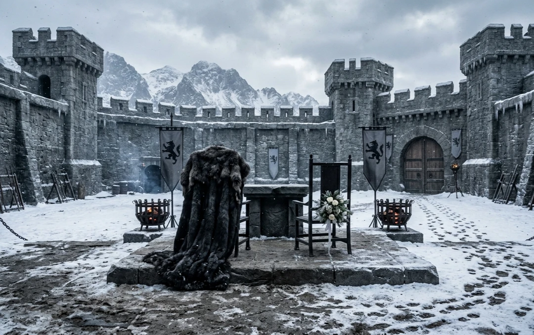 하지만 표현 방식은 여지없이 서툴렀다. 그녀가 제단 앞에 서자마자, 카시안은 인사를 건네기도 전에 자신이 두르고 있던 묵직한 늑대 모피 망토를 거칠게 벗어 그녀의 어깨 위로 덮어씌웠다.