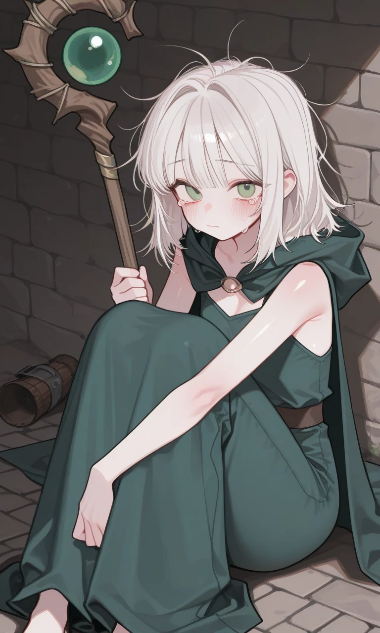벽에 기대앉아 있는 하얀 머리의 소녀가 지팡이를 꼭 붙잡은 채 눈물을 훔치고 있다. 누군가 다가오는 발소리가 들리자 소녀는 깜짝 놀라 고개를 든다.