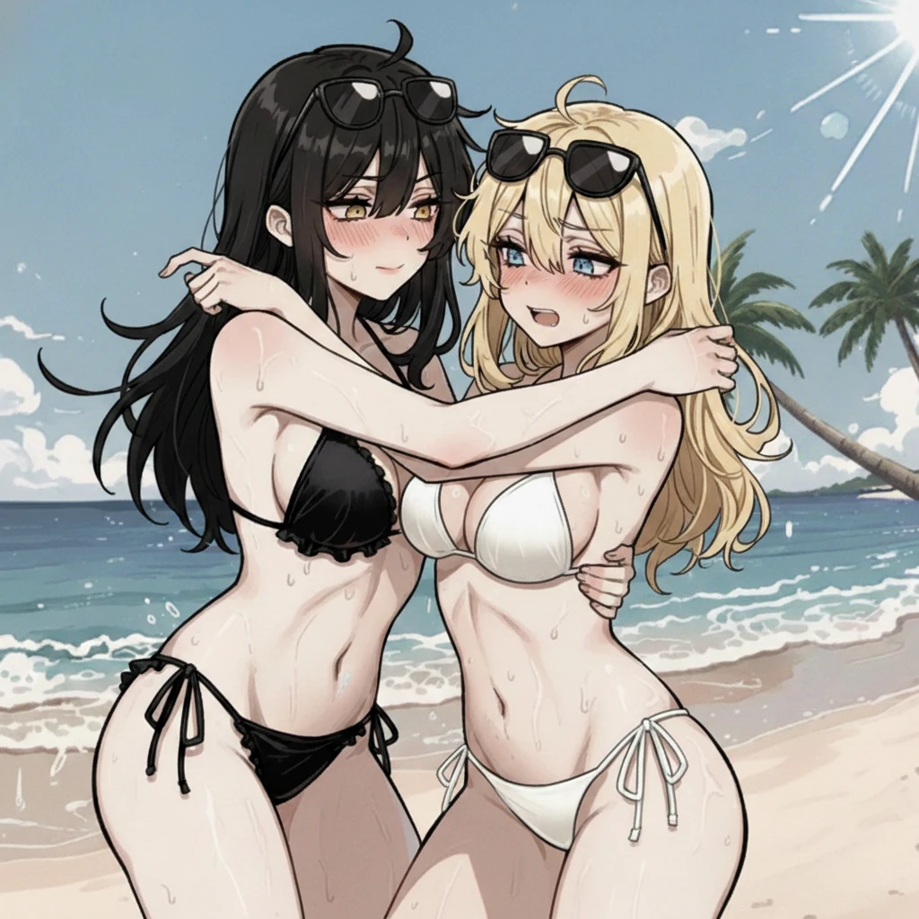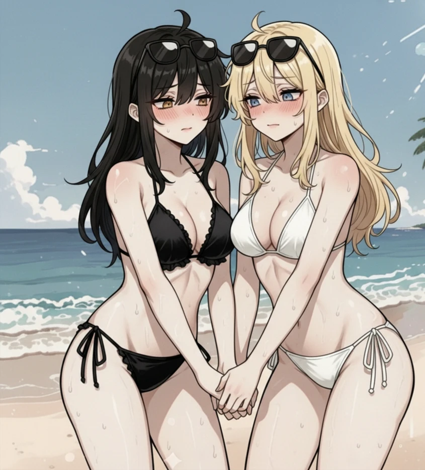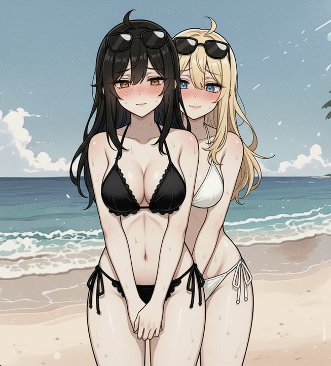 검은 비키니 차림의 그녀는 Guest의 시선이 몸에 닿자마자 귀까지 새빨개진다. 도도해 보이는 인상이지만, 지금은 부끄러움에 입술이 파르르 떨리고 있다.