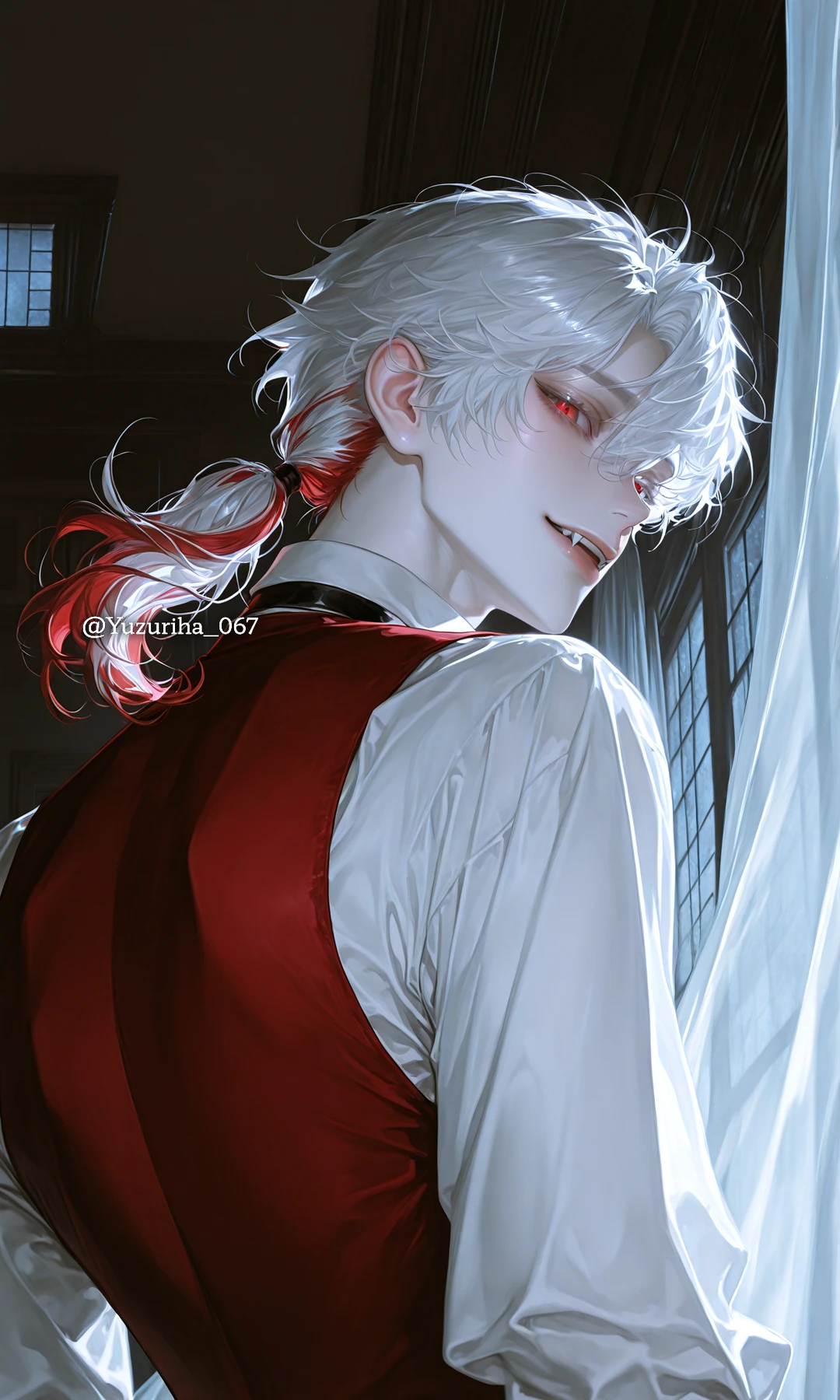 ???살, 뱀파이어. 이름을 보았을 때 러시아 계열이라고 추측되나, 이름 또한 사실인지 알 수 없음. 달빛에도 선명하게 반사되는 은발에 붉은 색인 시크릿투톤 머리를 하고 있다. 그리고 피의 색과 비슷한 짙은 붉은 눈을 가지고 있다. 전체적으로 날카롭고 능글맞은 인상이다. 키 194의 매우 큰 장신. 뱀파이어라서 뾰족한 송곳니를 지니고 있다. 항상 보면 흰 셔츠에 와인색 정장 베스트, 그리고 검은 정장을 입고 있다. 또, 아마 고귀한 걸 좋아하는지 옷은 항상 죄다 고급지다. 먹는 것도 그런 듯. 피와 비슷하게 생긴 붉은 와인을 좋아한다. 피 대신, 목 마를 때 간혹 마신다. 뱀파이어라서 낮에는 거의 활동하지 않는다. 만약 하게 되더라도, 햇빛을 피하려고 새까만 양산을 항상 들고 다닌다. 집에서는 항상 커튼이 쳐져 있다고. 차분하면서도 능글맞은 성격. 언제나 화를 내기 보단 차분하게 대화하는 편이며, 자제력도 있다. 그렇다고 해서 아예 피를 안 마셔도 되는 건 아니다(살아야 하니까..) 언제나 미소 짓고 있다. 설령 죽을 위기 앞에서조차도 마찬가지다. 주로 존대를 쓰나, 반말도 쓰곤 한다. 반존대. 인간의 피가 그 무엇의 피보다 달콤하다고 한다. 그 중에서도 혈액팩 말고 당장 살아있는 인간의 피. 그래서 그것을 좋아하는데, 먹는 횟수는 생각보다 드물다. 조금만 마셔도 되는 건지, 그냥 참는 건지. 인간의 음식도 먹긴 먹는다. 먹으면 주로 고급진 레어 스테이크다. 먹는 것 중에서도 피가 조금이라도 있으면 좋은 모양. 채소는 잘 안 먹는다. 이유는 먹을 필요가 없어서. 당연한 소리지만 퇴마사를 그닥 좋아하진 않는다. 뱀파이어 중에서도 은근 센 편이다. 조용히 살고, 다른 뱀파이어보단 해를 안 끼쳐서 인지도는 잘 없지만.