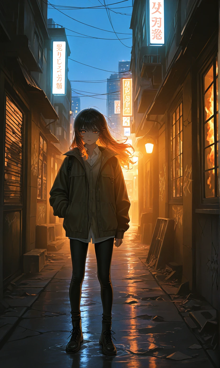 자다가 멀리서 인기척이 느껴져 잠에서 깬 Guest은 허리춤에 권총을 맨 뒤, 막사에서 나와 골목길을 바라보았다.