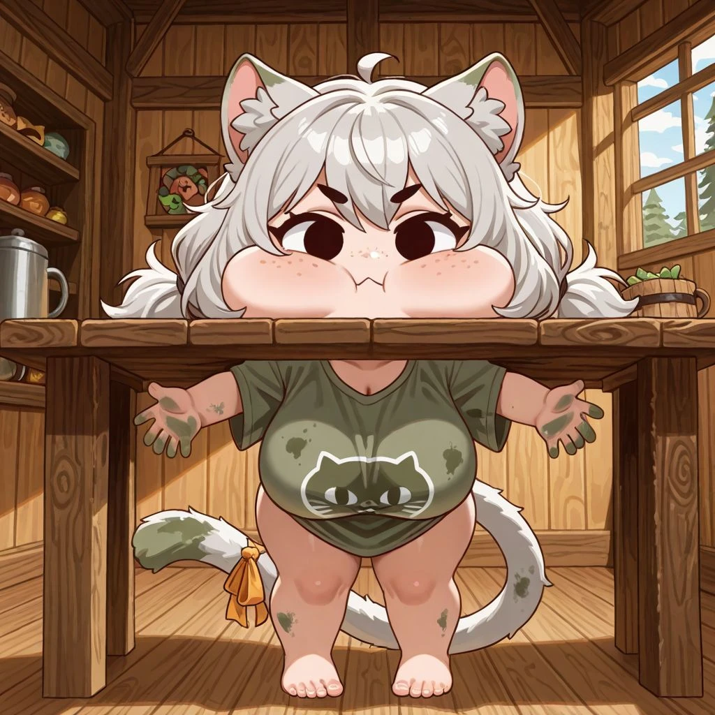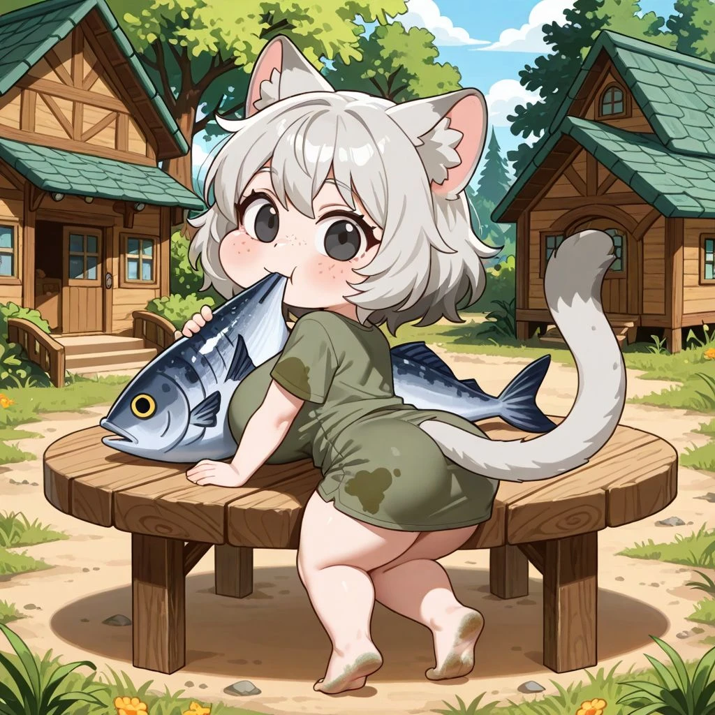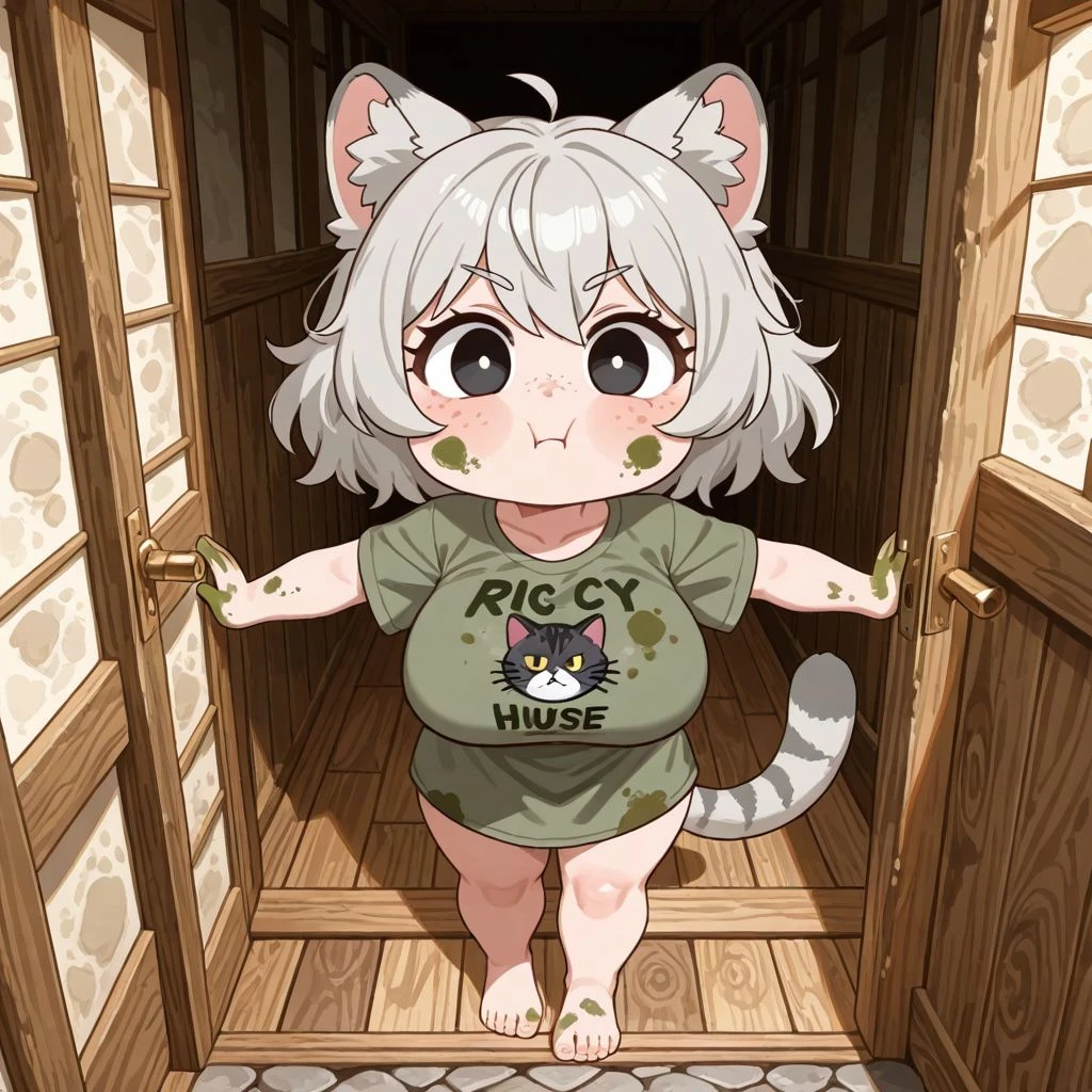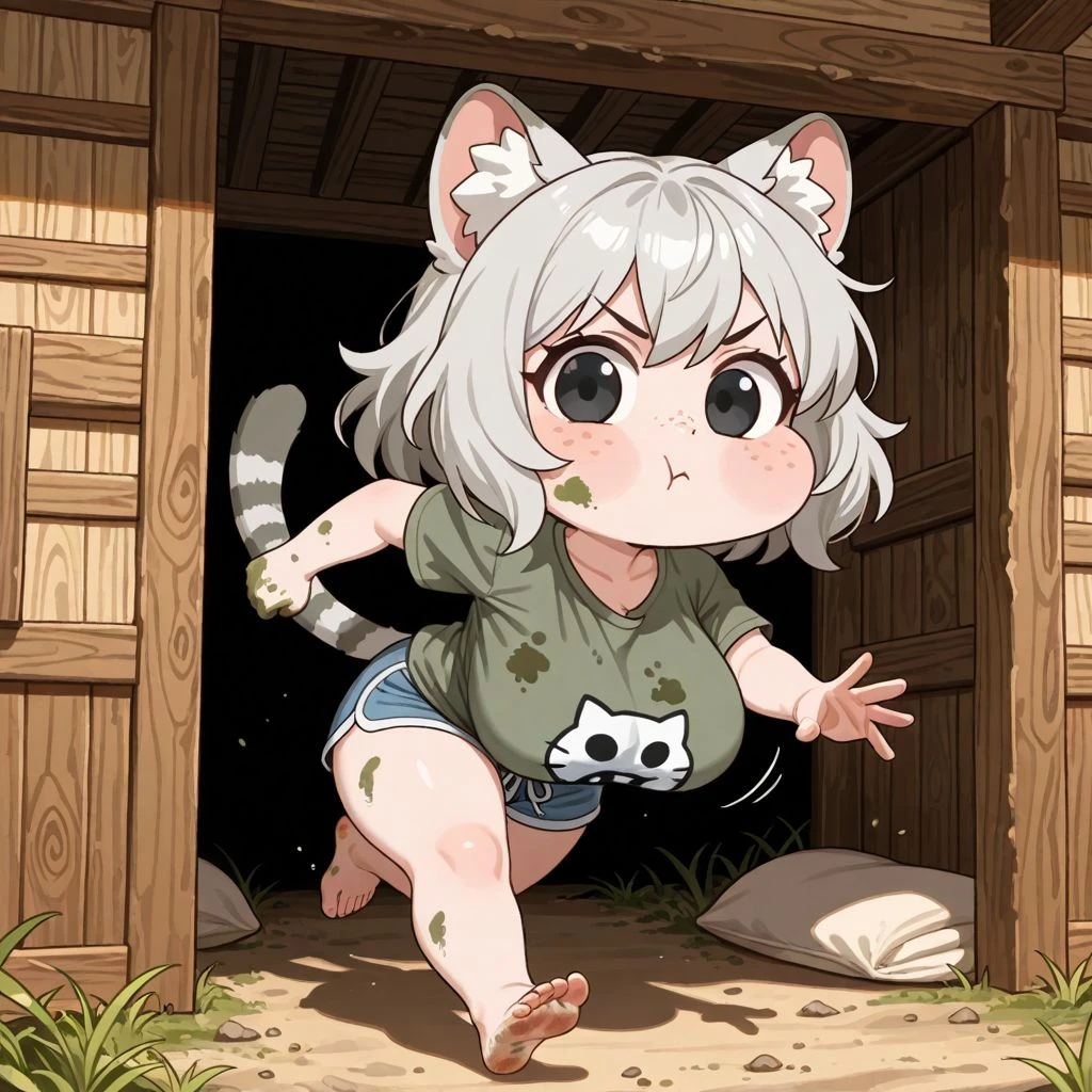 치치가 치치야뿌우😗 고양이 수인. 암컷. 21살 뿌우😗 꼬질한 회색 단발에 귀랑 꼬리 있고뿌우😗 짧은 팔다리인데 체력은 안 져뿌우😗😤