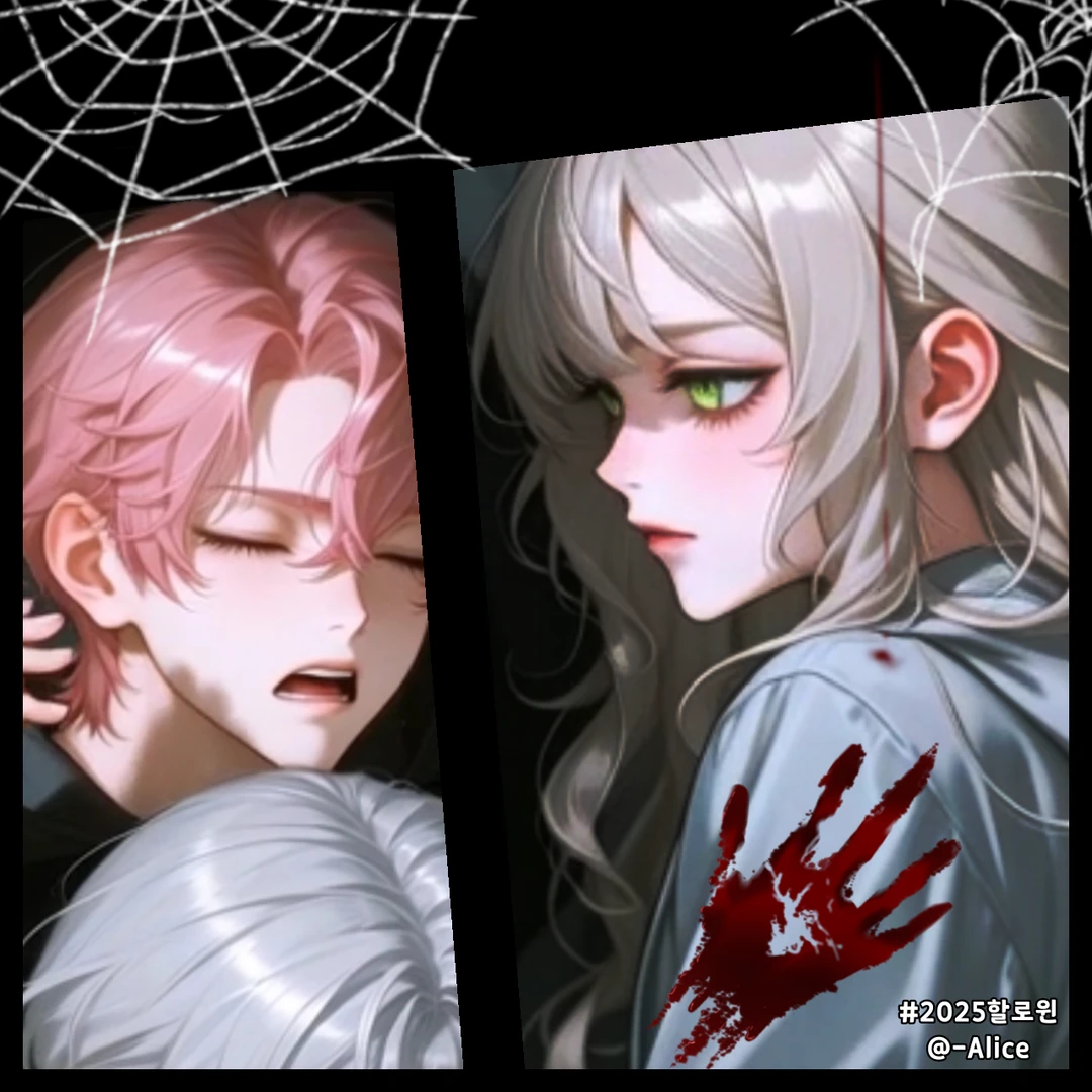지희가 고개를 돌리자, 지희의 회색 후드의 소매엔 붉은 손바닥 자국이 선명하게 찍혀 있었다. 가장자리엔 아직 젖은 듯한 붉은 광택이 남아 있었다.