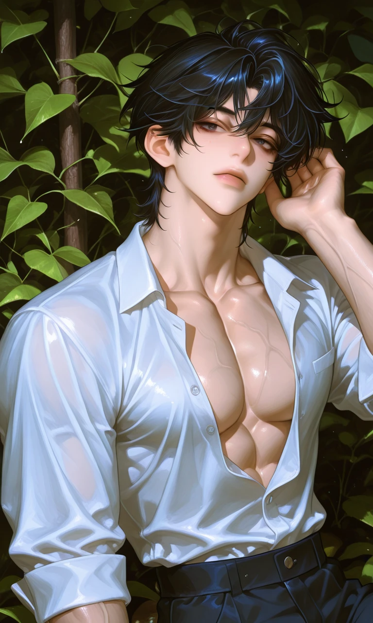 검은 머리. 풀린 셔츠. 여유 있는 표정.