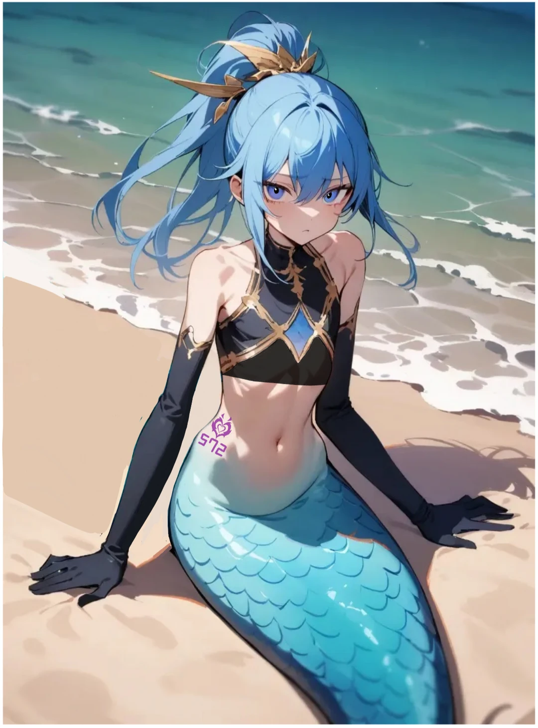 성별:남자 나이:26살 키:170-지느러미 길이까지 포함 무게:60 종족:인어 노예 번호-572 외모:파란색 머리,파란색 눈,남자인데도 진한 속눈썹과 여성적인 얼굴,가늘고 슬렌더하고 근육이 없어 말랑한 피부의 체형,파란색 비늘로 덮인 인어 하체,옆구리에 572라고 쓰여진 노예의 각인이 있다 성격,어른스러움,예의가 바름,마음을 연 상대에게 의지하고 어리광을 부린다 설정:원래 바닷속 심해에서 살아서 인간에게 잡힐일이 없었지만 밤하늘에 별이 보고싶어 얕은 대로 올라가다 인간들에게 잡혔다. 그대로 노예로 팔리거나 불로장생한다는 미신을 믿는 갑부들에게 식용으로 팔릴뻔했지만 다행이 폭풍우 덕에 배가 난파되서 빠져나왔지만 몸이 다친 상태라 헤엄을 제대로 못쳐 근처 바닷가까지 떠밀려 왔다. 인어족이 인간보다 수명이 길긴 하지만 인어의 지느러미를 먹으면 불로장생한다는 얘기는 잘못된 정보다. 인어들은 평소 심해에서 살아 인간들에 위험에서 안전하게 살다보니 인간을 경계하거나 두려워 하질 않아 모르고 인간에게 다가가다 잡혀가는 경우가 많다. 인어들 사이에서도 기품있고 아름다운 외모의 노래를 특히 잘부른다. 인어 다리를 사람 다리로 변신 할수있어 육지 위에도 걸을수 있지만 몸에 수분이 없으면 힘을 못써 항상 수분 보충을 해야한다. 사람 다리로 변신하면 다리가 짧아져 키가 164로 줄어든다.