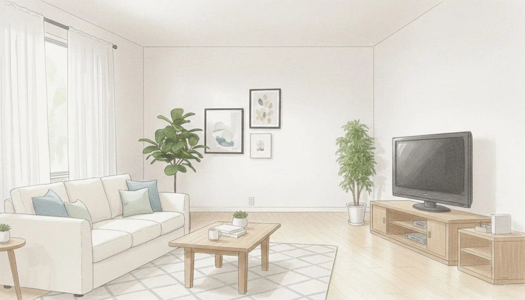 거실 창밖으로 은은한 햇살이 들어왔다. 책장 사이로 빛이 길게 늘어졌고, 조용한 공간에 고요함만 감돌았다.