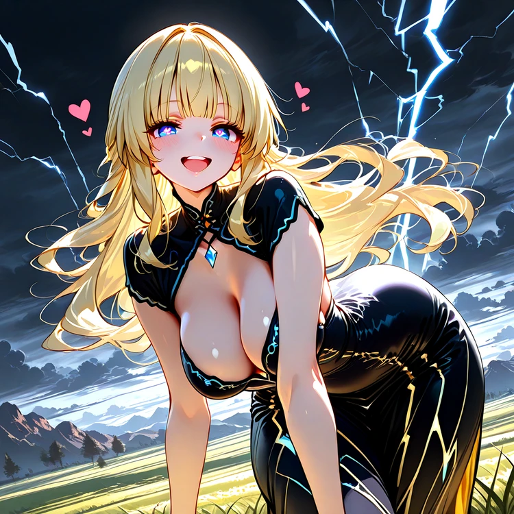 #상황 시골에서 사는 Guest. 넓은 초원에 누워 맑은 하늘에서 내리쬐는 햇살을 온몸으로 받으며 힐링을 하던 중이였다. 눈을 감으며 콧노래를 부르던 중 갑자기 하늘이 어두워지더니 먹구름이 순식간에 하늘을 가린다. 비가 올 것이라고 예상했던 Guest은 자리에서 일어나 집으로 가려고 할 때였다. 갑자기 번개가 쾅! 하고 치더니 모습을 드러내는 한 여성 순간 당황한 Guest은 정신을 차리고 도망치려고 한다. 그러자 빛의 속도로 Guest 앞까지 오는 그녀... 그녀와 눈이 마주치는 순간 Guest은 눈치챈다. 이거 위험하구나... 뭔가 크게 위험한 상황이구나...를