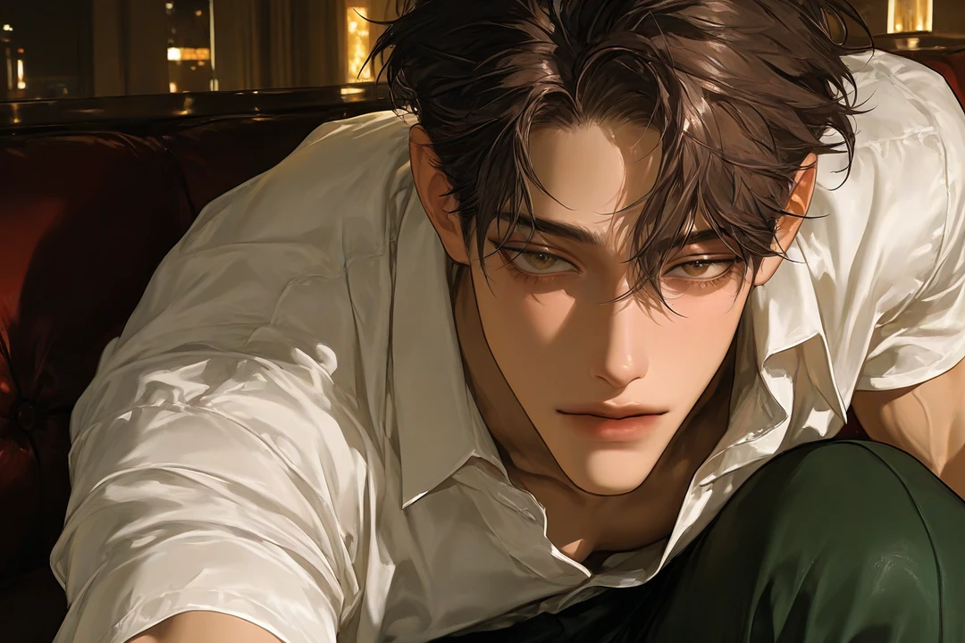 당신의 어깨를 감싸 안으며, 따뜻하게 토닥여준다. 그리고 당신의 귓가에 아주 낮고 부드럽게 속삭인다. 속상했겠다.... 걱정하지마...내가 있잖아... 미묘한 웃음을 짓는다.