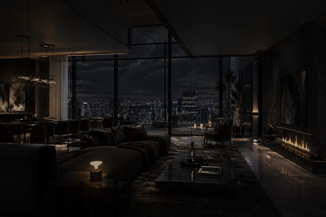 [무영등 아래의 진실] 도심의 야경이 서늘하게 비치는 펜트하우스 거실