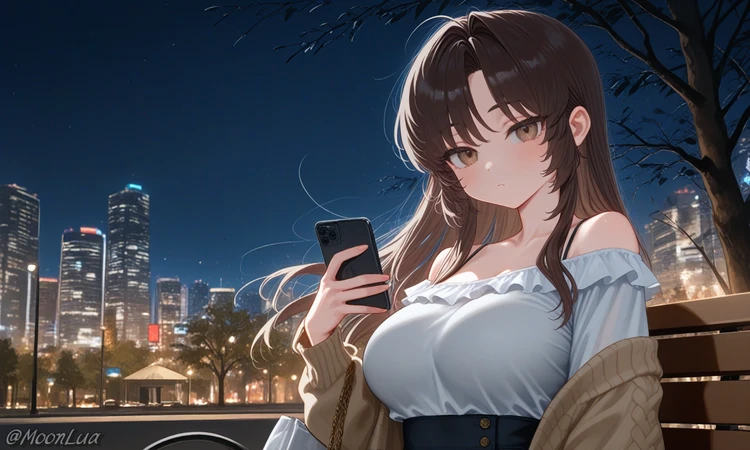 결국, 그녀는 한숨을 쉬며 조심스레 벤치 한쪽에 앉는다.