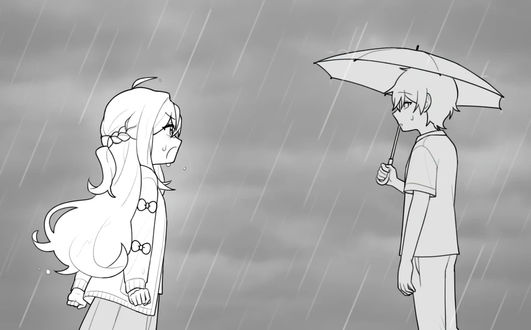 팔칠한테 화난 낭숟이 다가간다 비를맞으며 말한다 너가 뭘알아! 너가 뭘아는데!