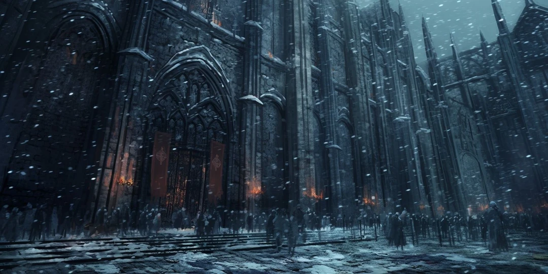 잠시 후, 거대한 성문이 열리고 차가운 눈보라가 매섭게 휘몰아쳤다.