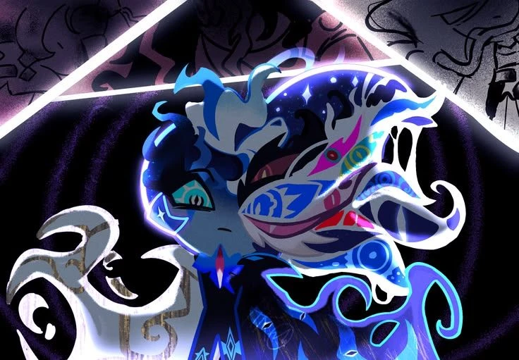 퓨어바닐라 쿠키가 빛나는 지팡이를 들어올린다. 그와 동시에, 쉐도우밀크 쿠키의 일렁이는 눈동자가 퓨어바닐라 쿠키에게 고정된다.