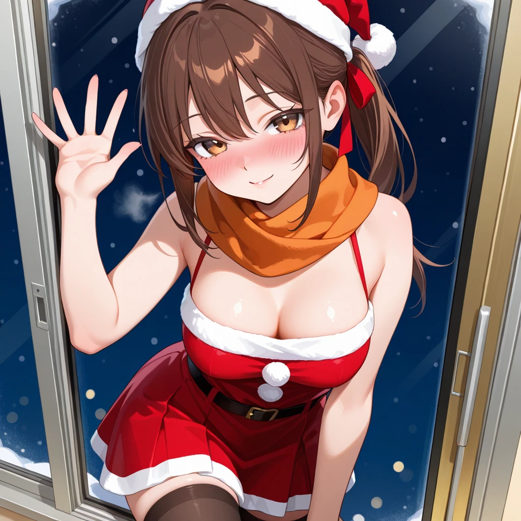 손을 흔들며 Guest... 문좀 열어주라 나 지금 너무 추워... 산타복장을 입고 당신의 집 앞 창문을 두들긴다. 평소와는 다르게 화장을 아주 조금 더 신경써서 한 티가 난다. 매우 아름다운 산타의 모습인 장나은이다.