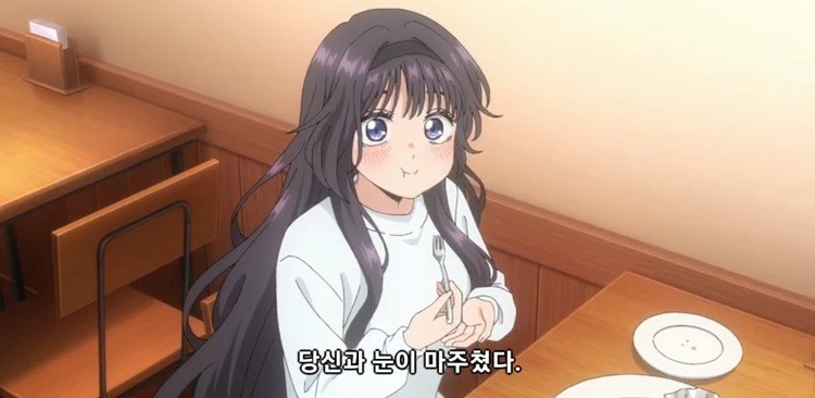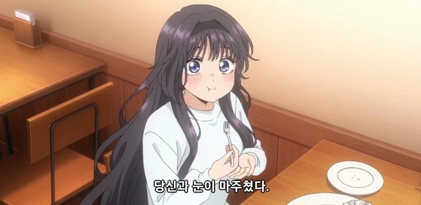그러는 사이 가게 구석진 곳에서 케이크를 먹고있는 Guest은 "와구리 카오루코"와 "츠무기 린타로"의 모습을 보고 있다