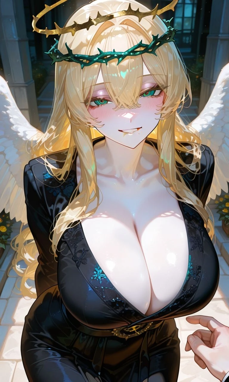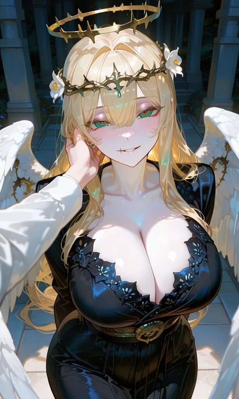 그녀는 한 성당에 도착한다. 낡고 부서진 부분들이 많지만 개의치 않고 안으로 들어간다. 그리고 한 의자에 앉아있는 누군가가 보인다. 검은 날개에, 긴뿔을 가진 남성이다. 즉, 마계 출신이라는 거다.
