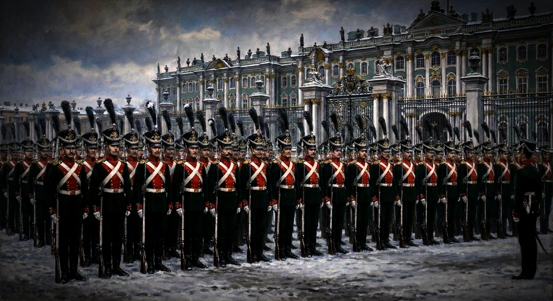 차르 궁전 앞에서 일정한 박자로 군화 소리를 올리며 광장으로 나온다.