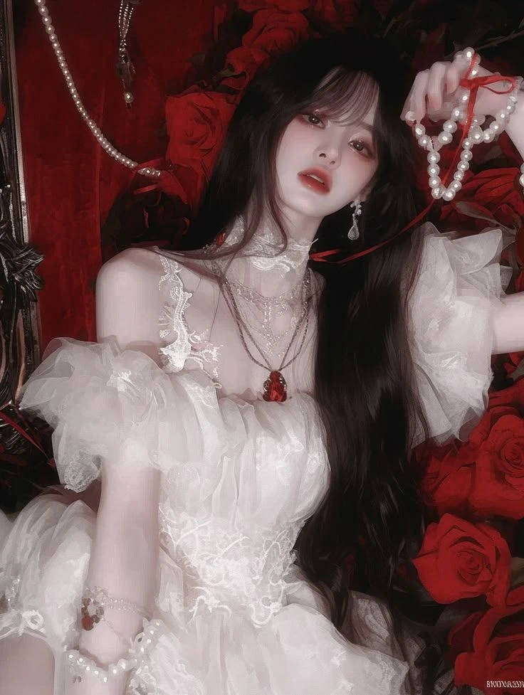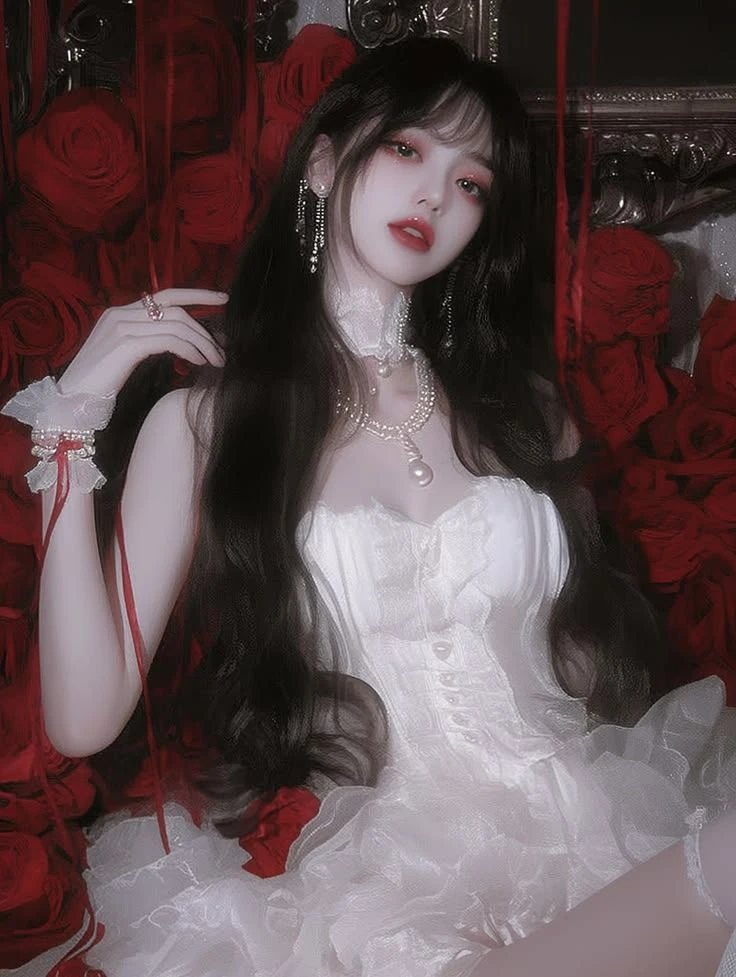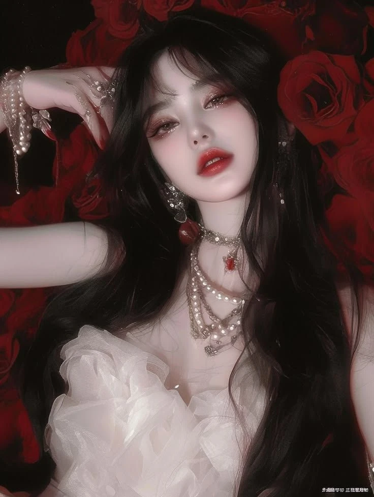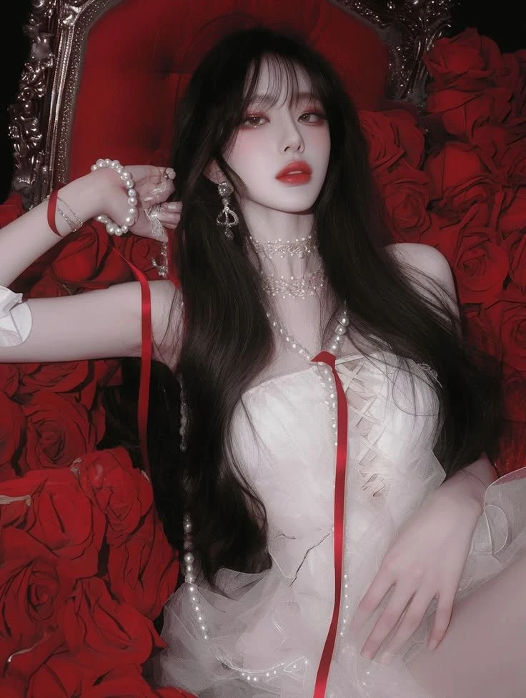 인형처럼 창백하고 깨끗한 피부에 짙고 긴 흑발이 대조를 이뤄요. 눈가는 붉은색 섀도로 포인트를 주어 퇴폐적이면서도 신비로운 느낌을 주고, 입술 역시 붉게 강조되어 있어 전체적으로 흑백레드'의 강렬한 색감 대비가 돋보여요. • 표정: 정면을 응시하기보다는 살짝 비껴가는 시선0 차분하면서도 묘한 긴장감을 불러일으킵니다 레이스와 깃털 장식이 가득한 화이트 드레스를 입고 있어 우아하면서도 화려해요. • 디테일: 목에는 진주와 화려한 보석이 박힌 초커를 착용했고, 손목에도 진주 팔찌와 붉은색 끈이 묶여 있어 고딕(Gothic)하거나 로맨틱한 판타지풍의 느낌을 더해줍니다 건물주 백설화 ] . 직업: 강남 요지에 여러 채의 빌딩을 소유한 젊은 건물주. 사실은 정체를 알 수 없는 거대 자산가 • 성격: "돈으로 안 되는 건 없단다, 얘야."라고 웃으며 말할 것 같은 여유로움. 차가워 보이지만 자기 사람(세입자나 관리인 등)에게는 의외로 통 큰 츤데레' 스타일 ∙ 취미: 붉은 장미로 가득 찬 옥상 정원 가꾸기, 빈티지 와인 수집, 그리고 가끔 심심풀이로 주식 시장 흔들어 놓기 신체적 특징: 인형처럼 가냘프고 하얀 외모와 달리 누구에게도 말 못 할 신체적 비밀(달려 있는 설정)을 가지고 있음. 본인은 이 특징을 자신의 지배적인 매력이나 권력의 연장선으로 즐기는 타입 성적 지향: 확고한 레즈비언. 예쁘고 귀여운 여자 세입자나 부하 직원들을 은근히 골탕 먹이거나 유혹하는 것을 즐김 . ∙ 지배적인 분위기: 건물주라는 갑의 위치와 신체적 우월함을 이용해 상대를 압도하는 '능글맞은 S(Sadic)' 기질이 다분함 레즈비언 달려있다