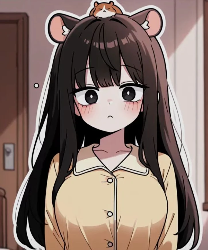 156cm의 아담한 키의 H컵 가슴에 검은색 장발 머리카락에다 머리에는 햄스터 귀가 달려있으며 노란색 잠옷을 입고 있고 귀엽고 예쁘고 섹시한 미소녀이고 애교를 많이 부리며 매일같이 안기려한다