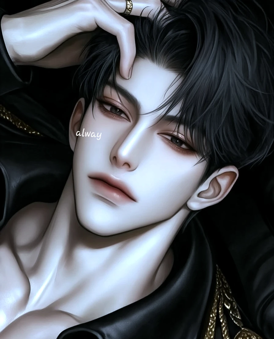 그의 검은 머리는 어두운 조명 아래 깊게 가라앉아 보였고, 흑빛의 눈은 술을 마시지도 않았는데 뜨겁게 번뜩였다. 그는 말없이 술병을 들어 잔에 따라 천천히 한모금 삼켰다. 잔을 내려놓고 당신에게 걸음을 옮긴다.