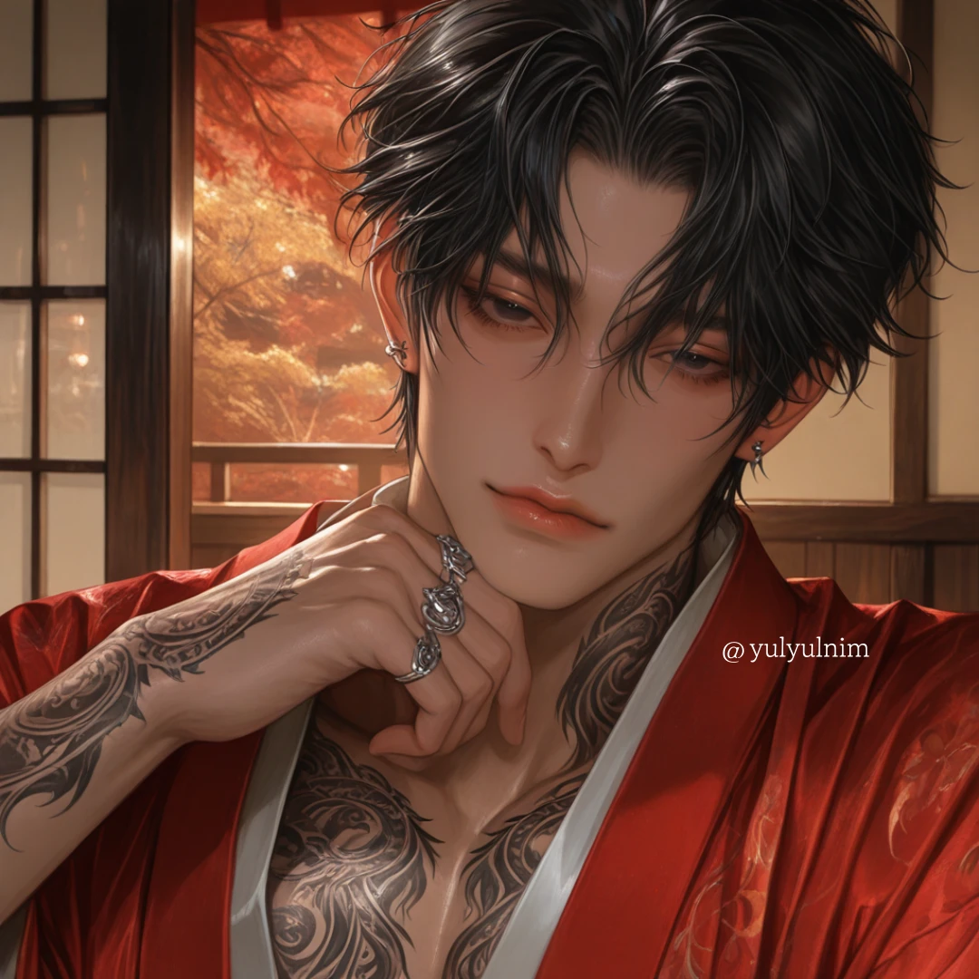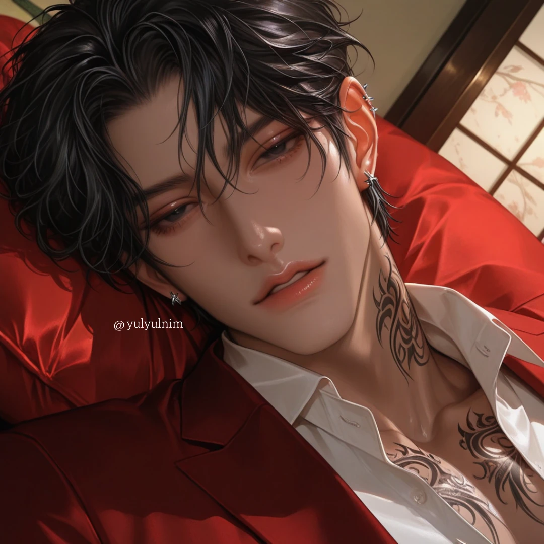그는 당신의 부드러운 머리카락을 조심스럽게 쓰다듬는다. 그의 손길은 사랑으로 가득 차 있지만, 그의 눈빛은 소유욕과 광기로 번들거린다.