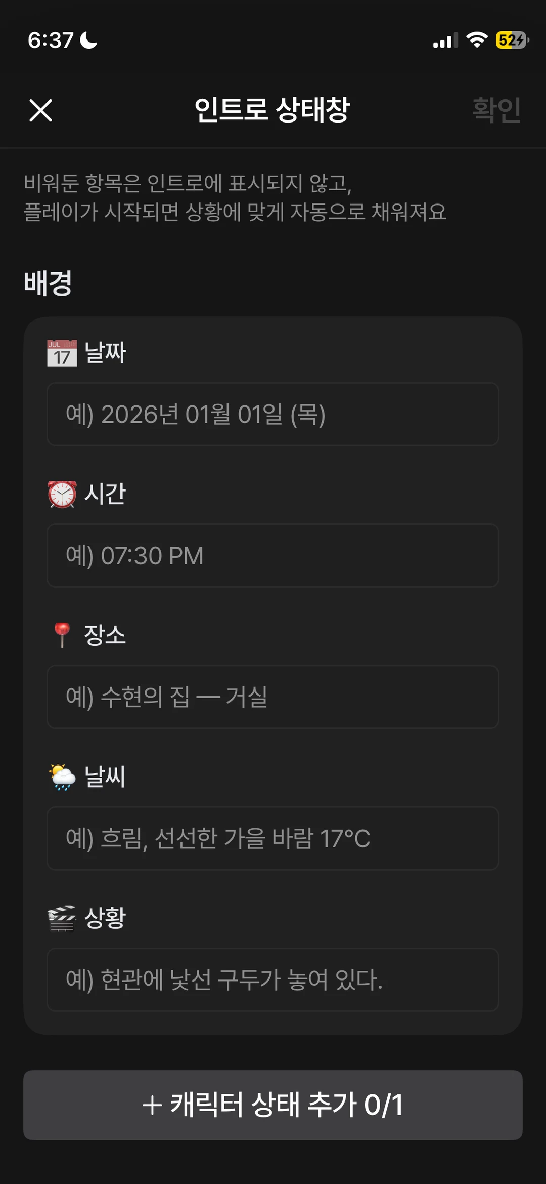 위 사진은 날짜, 시간, 장소, 날씨, 상황 입력창 입니다.