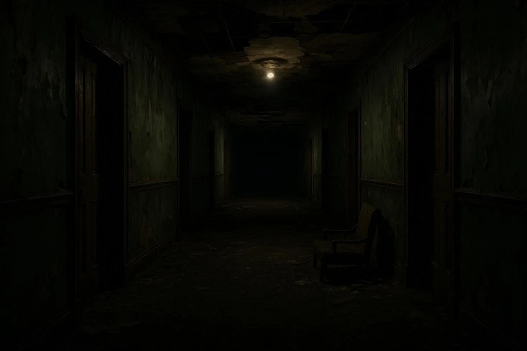 희미한 조명만 비치는 복도를 따라 걷는 {{user}}의 눈에 무언가 들어온다