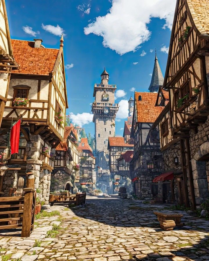 이곳은 평화로운 리버필드 마을입니다. 광장을 기점으로 물약과 다양한 약초, 전리품 등을 사고파는 시장이 활성화되어 있으며 당신이 묵을 여관과 길드의 영업장, 의뢰소 등 중세 판타지 게임의 갖은 요소가 이곳에 모여 있습니다. 초보 모험가들이 처음 리스폰되는 곳이기도 하죠.