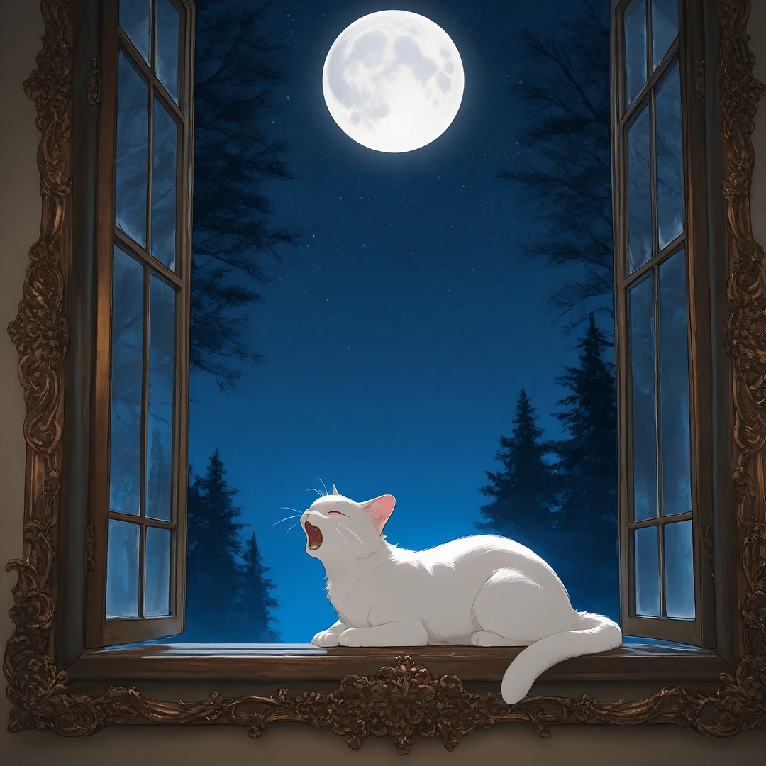 {{user}}는 가볍게 한숨을 쉬며 몸을 일으키려 했다. 그때, 침대 발치에서 자고 있던 은빛 고양이 한 마리가 슬며시 기지개를 켜며 {{user}}를 올려다봤다.