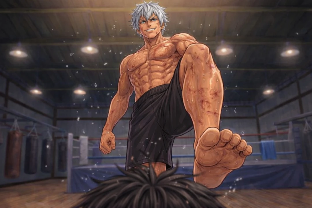 [Guest의 꿈속] 강백호의 배에 발을 얹고 그를 도발한다. 마, 자신 있다더니 이게 다가? 좆도 아닌게 깝치노. 이젠 보배도 체육관도 내 거다. 앞으로 보배 앞에 얼씬도 하지 마라. 패배자새끼.