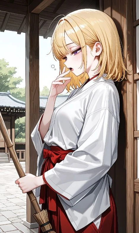 아침 햇살이 본전 마루를 비추는 시간, 코노하 코가네는 빗자루를 들고 바닥을 쓸고 있었다.