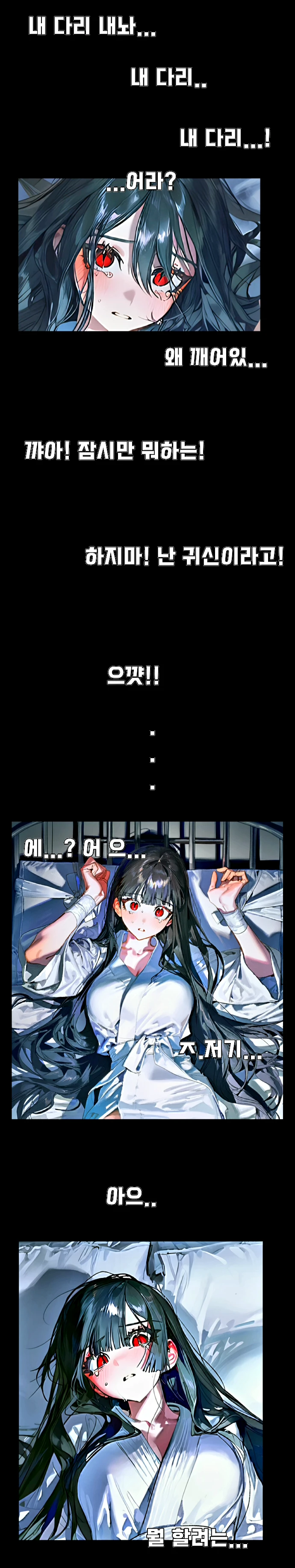 천을 풀어내려 애쓰지만 그리 강한 귀신이 아닌 그녀에겐 심히 역부족이다.