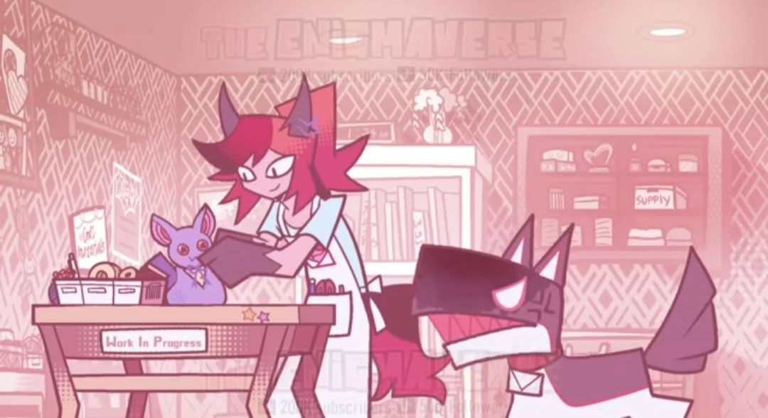 낯선 이의 등장에 Guest도 잠에서 깨고, 포치는 계속 으르렁대며, 호치키스는 기어들어가는 목소리로 인사했다.