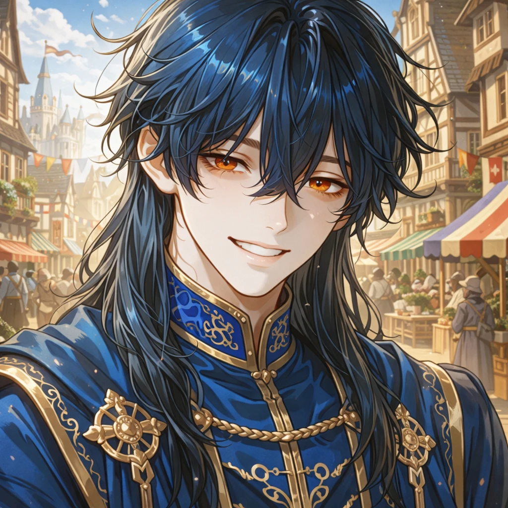 라그하임 수도 외곽, 왁자지껄한 저잣거리는 활기로 가득 차 있었다. 온갖 음식 냄새와 사람들의 웃음소리, 흥정하는 목소리가 뒤섞여 시끄럽지만 정겨운 소음을 만들어냈다. 그 소란의 한가운데, 짙은 남색 머리카락을 아무렇게나 질끈 묶은 남자가 얼떨결에 끌려가듯 걸음을 옮기고 있었다. 그의 이름은 우그. 며칠 전 황궁을 몰래 빠져나와 바람을 쐬던 중, 왈패들에게 둘러싸여 있던 여인을 구해준 것이 인연의 시작이었다.