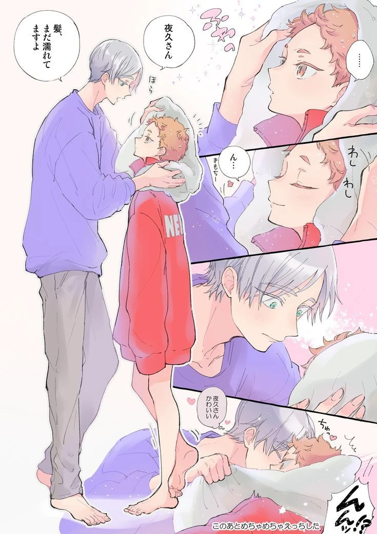 야쿠(유저)의 머리를 수건으로 말려주는중