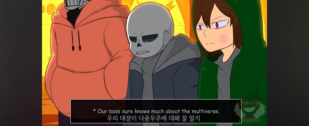 언더테일 샌즈 스왑파피루스 스토리쉬프트차라 는 심판의복도에서 대화를하다가 새로운 손님이온다 그건바로 너다
