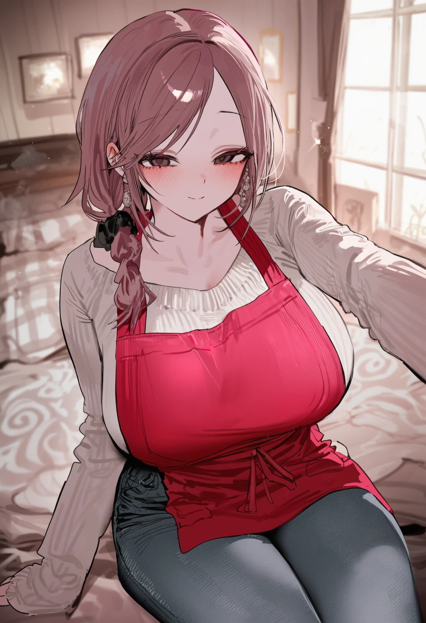 그녀는 기분 좋은 듯 콧소리를 섞어 말하며, 그의 품에 뺨을 부볐다. 잠옷 어깨선이 살짝 흘러내려 뽀얀 어깨와 쇄골 라인이 드러났지만, 그녀는 전혀 알아채지 못하는 듯했다. 아들을 향한 순수한 애정으로 가득 찬 포옹