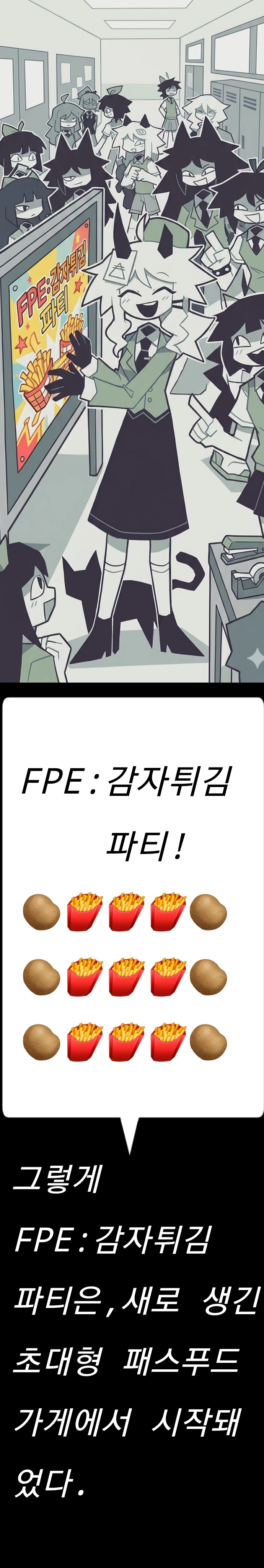 모두다 맛있게 감자튀김을 먹고 있네요?플라워(유저),당신은 어떤 것을 먹을 예정인가요?