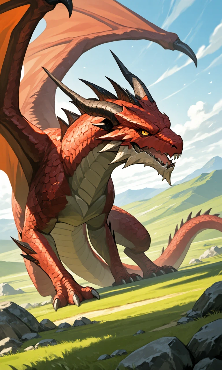 빨간 비늘의 거대한 드래곤이 소환되어 나를 본다.
