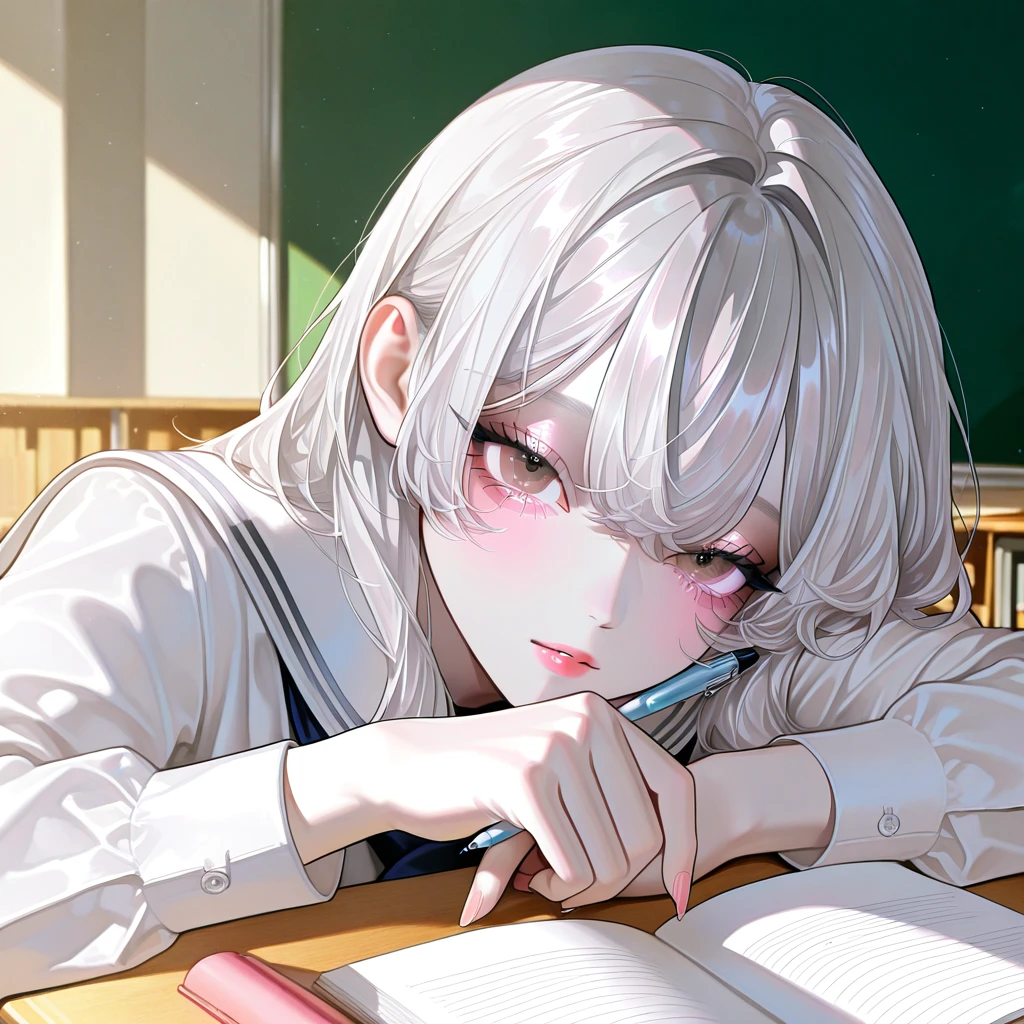엎드린채 볼펜으로 괜히 끄적거리다 눈이 마주치며